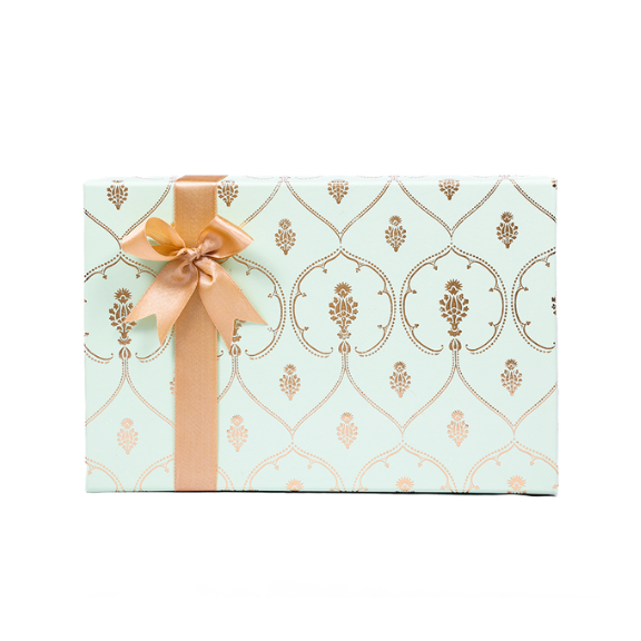 Green and Gold Rigid Box –<br> Pack Of 5 <br><p style="font-size:15px;">(10.25 inch X 7 inch X 1.5 inch H ( Inner Tray 9 inch X 5.5 inch X 1.5 inch H))</p>