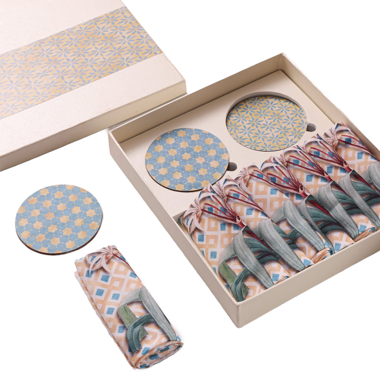 Ideal For: Perfect for GIfting during Festivals and Special Occasions or as a thoughtful Gesture : Napkins and Coasters can be used to enhance the decorativ element of the table .: Ideal for Corporate gifting as both Napkins and Coasters add a touch of Elegance to Office settings,: The gift set combines Practicality and Aesthetics making it a Great choice for Personal or Professional Gifting