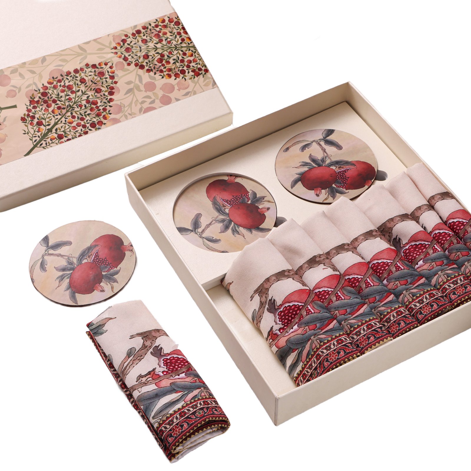 Ideal For: Perfect for Gifting during Festivals, Special Occasions, or as a thoughtful gesture; Napkins and Coasters can be used to enhance the decorative element of the Dining Table at Parties. : Ideal for Corporate Gifting as it adds a touch of elegance to meeting rooms and workstations. : The set combines practicality with Aesthetics making it a Great choice for Personal or Professional Gifting